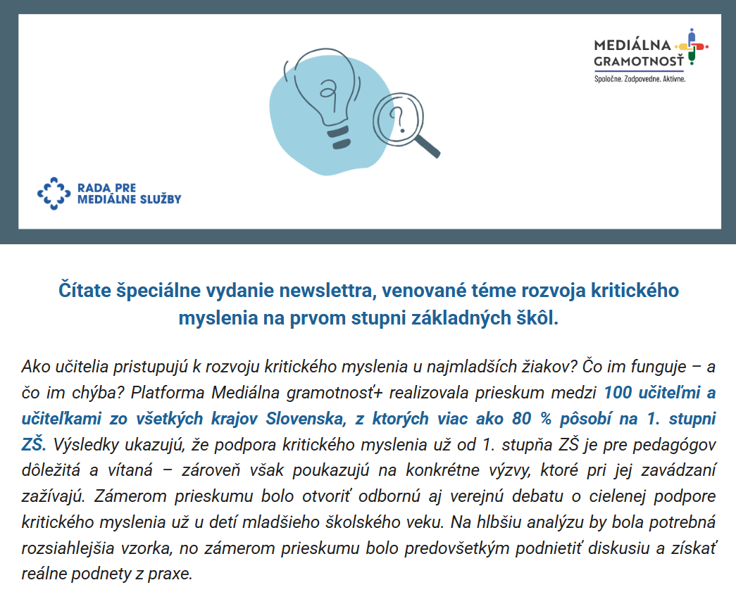Špeciálny newsletter: Prieskum: Kritické myslenie na 1. stupni ZŠ